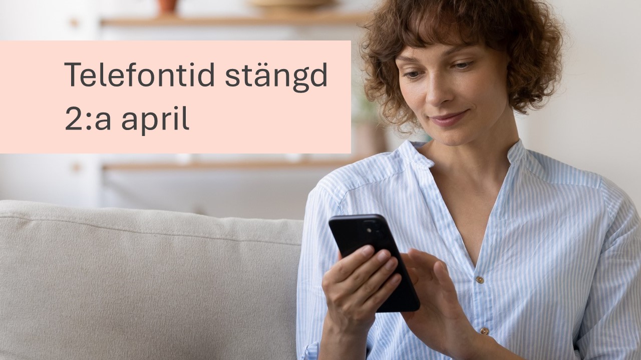 Skärtorsdagen 2/4 är telefontiden stängd. Välkommen att ringa igen nästkommande vecka.
